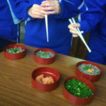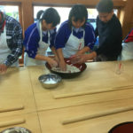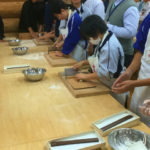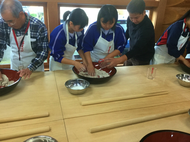 開会式後、プログラム①「島根の自然環境と食文化を学ぶ」で、宍道湖自然館ゴビウスの見学、そば庄たまきさんでそばうち体験をし、午後8時からのプログラム②では、「世界の現状を見つめる」と題し、フィリピンでの研修の報告がありました。