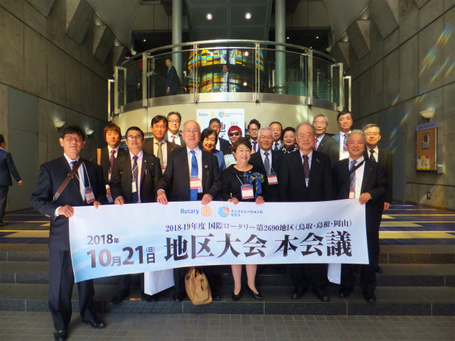 秋晴れの10月21日(日)第2690地区の地区大会が岡山シンフォニーホールで開催され、