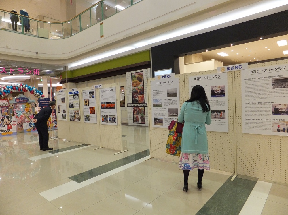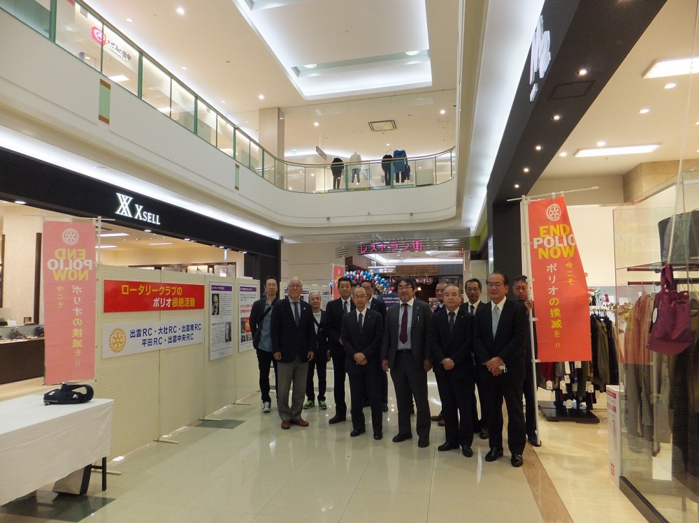 ロータリーのポリオ根絶活動やその他の奉仕活動を知ってもらうために、24日、市内5クラブ(出雲、大社、出雲南、平田、出雲中央)でパネル展示を行い、一般の方々に理解と協力を求めました。